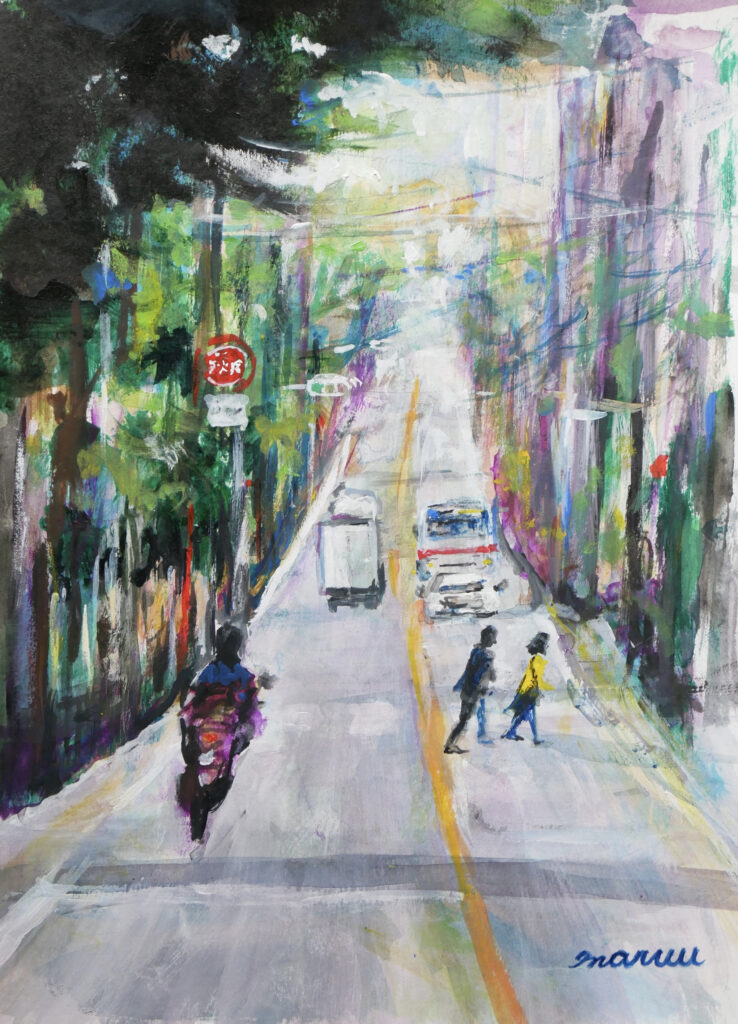 11 「福岡の街角」Fukuoka Streets 2009–2026, 風景 Landscape 4月の浄水通り 2024 ・作品名:「4月の浄水通り」・制作年:2024年・画材:アクリル絵具・素材:水彩紙・サイズ:333×242 (4号F サイズ) 公募展 入選 作品(第10回 jam公募展) 〈作品コンセプト〉坂道が作る景色の変化、車の流れ、雲の動きで変わる色と光の世界。 一瞬で変化する景色を、追いかけ、つかまえる。 作品紹介・制作過程 → Instagram 購入はこちら →BASE 2024-09-11 | Posted in 11 「福岡の街角」Fukuoka Streets 2009–2026, 風景 Landscape | No Comments » 関連記事 20 大濠公園 FUKUOKA 2011 19 大名1-6 FUKUOKA 2011 18 百道浜遠景(能古島より) FUKUOKA 2011 17 大名1-14 FUKUOKA 2011 16 浄水通8-10 FUKUOKA 2011 < 高野山 金剛峯寺 西塔 2023 17時50分の浄水通り 2024 > Comment Warning: Undefined variable $user_ID in /home/morihdst/maruartworks.com/public_html/wp-content/themes/juliet/comments.php on line 34 Name(必須) E-mail:非公開(必須) Comment Δ